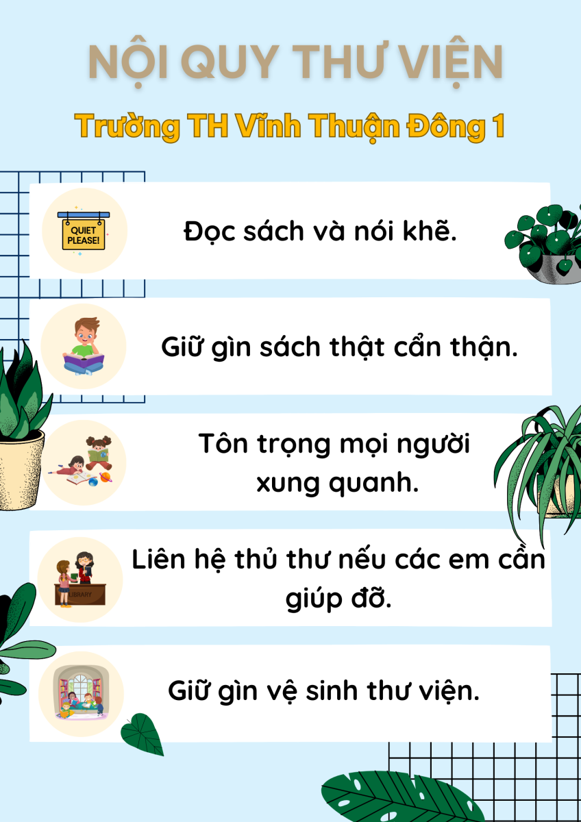 Trong thư viện của trường Tiểu học, mỗi học sinh đều phải giữ cho không gian yên tĩnh, tôn trọng sách và mọi người xung quanh. Việc trả sách đúng hạn và tình thần tự học là vô cùng quan trọng. Các em học sinh sẽ được hòa mình vào thế giới của tri thức, nơi nảy mình giữa những trang sách màu hồng và xanh, mang theo mùi của giấy in và cây viết mới mỗi khi bước chân vào.